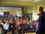 Hier bestimmen die Zuschauer, wie die Handlung auf der Leinwand fortgesetzt wird. Das Stück kann auf verschiedene Zielgruppen und Inhalte angepasst werden.